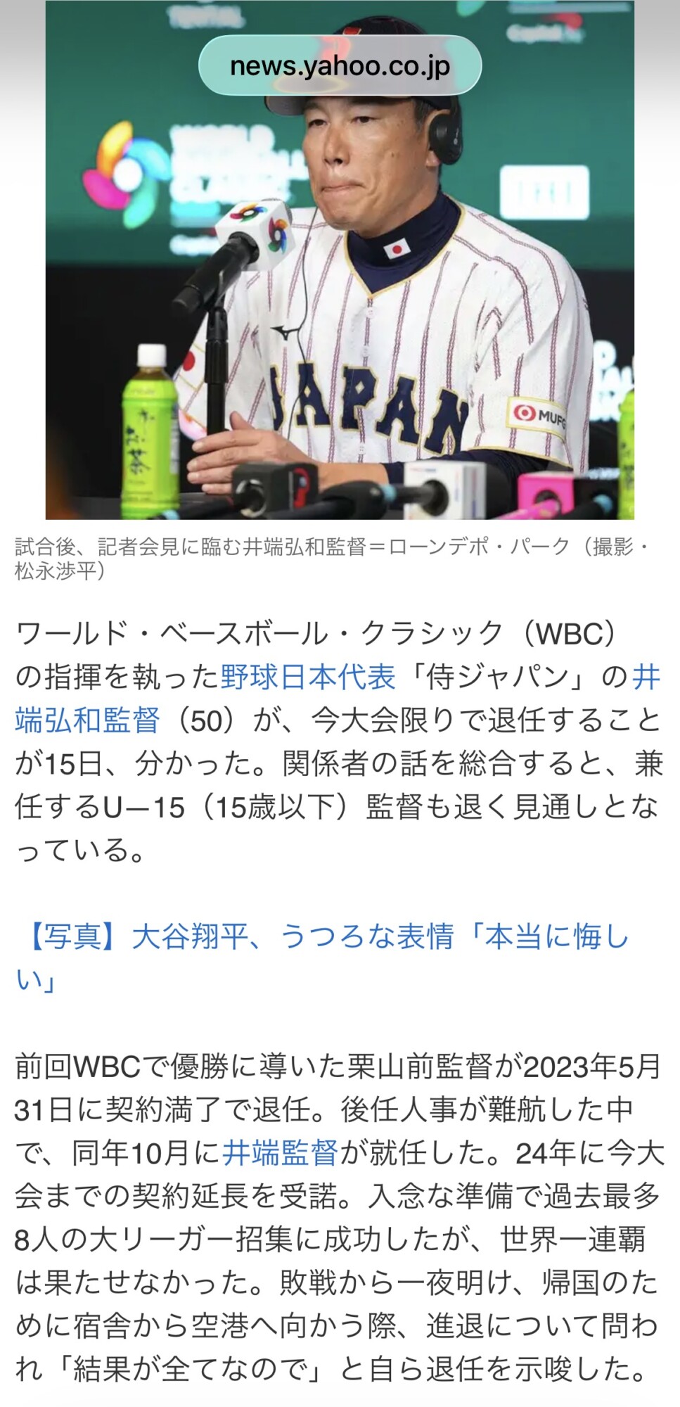 WBC侍ジャパン、敗戦