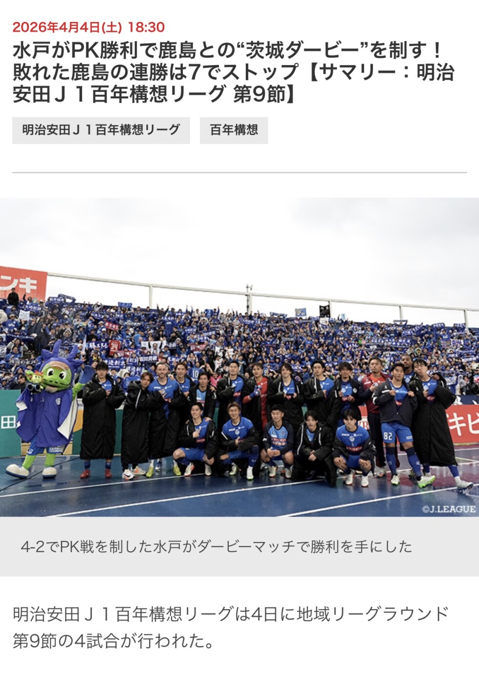 J1初の茨城ダービー
